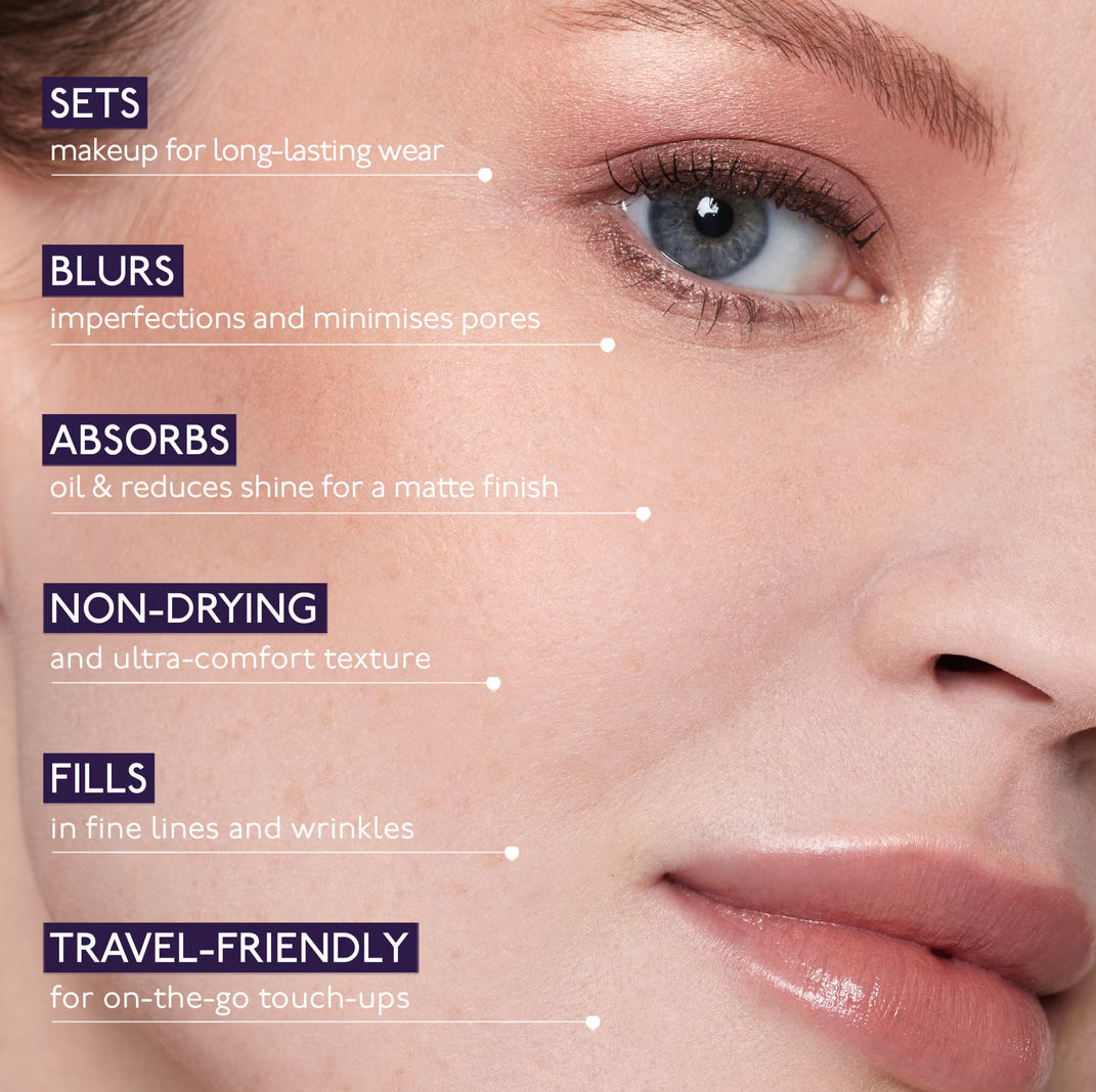 Non-drying, the translucent formula instantly absorbs excess oils and shine for a weightless mattified result, promoting a skin-blurring effect. Mica pearls and soft-focus powders support the longevity of your foundation and concealer, setting your look in place with a silky second-skin-like finish. Plus, the mirrored-compact arrives with a handy puff for on-the-go topping up, making this multi-tasking pressed powder a handbag must-have.