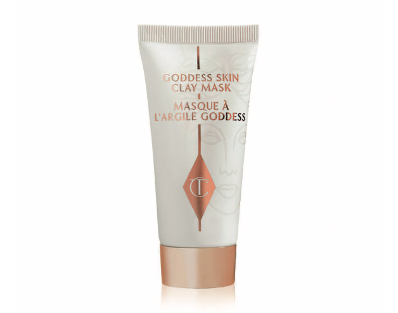 Clear imperfections with the Charlotte Tilbury Goddess Skin Clay Mask, a skincare treatment that leaves the complexion moisturised and soothed with a sweet, floral fragrance.