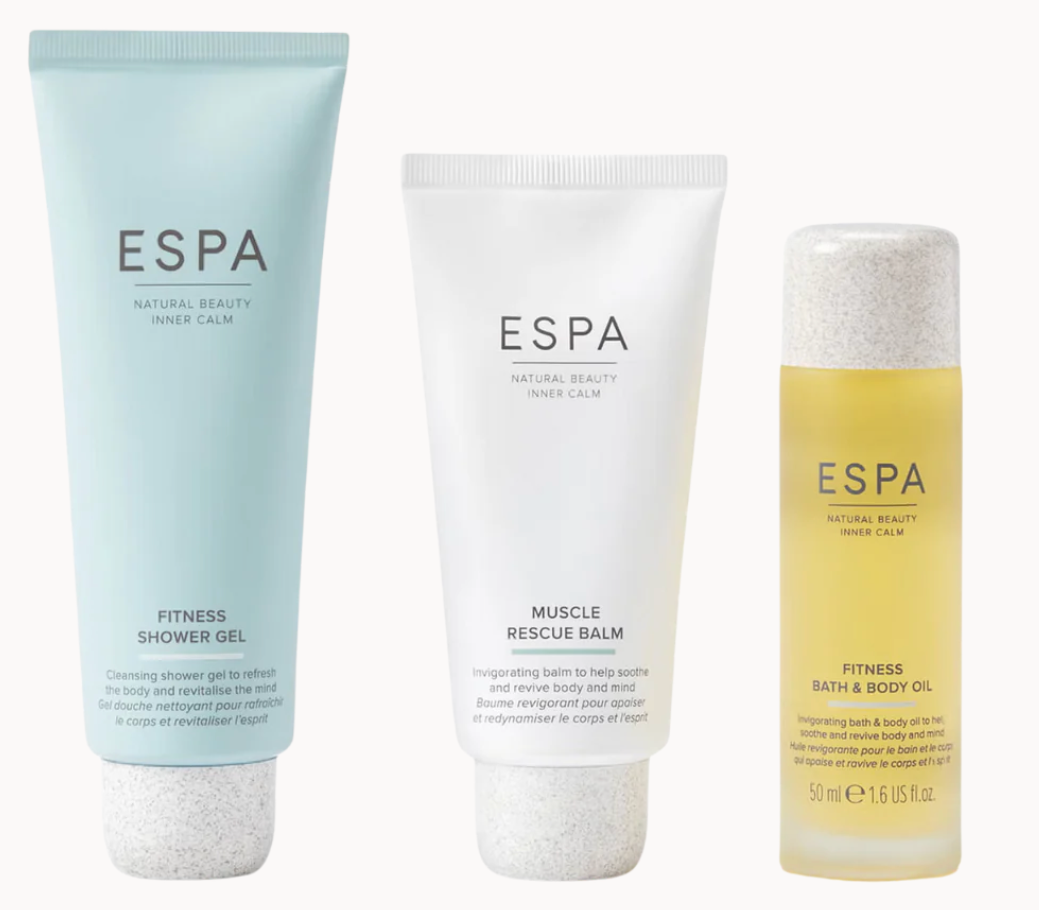 - ESPA’s Fitness Shower Gel cleanses and helps revitalise tired bodies with a stimulating aromatic blend of rejuvenating Eucalyptus, warming Clove, and soothing Lavender.
