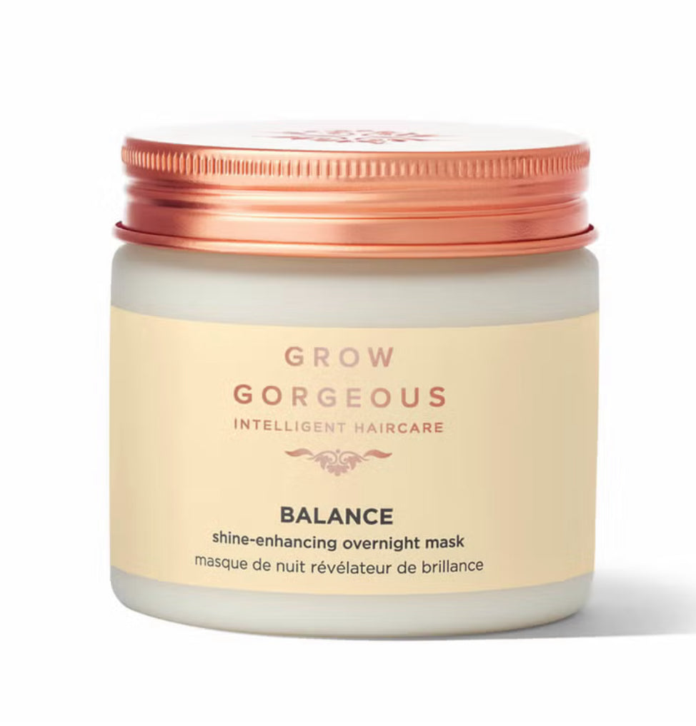 The Grow Gorgeous Balance Shine-Enhancing Overnight Mask nourishes hair from root to tip, deeply conditioning your locks. Working overnight, this mask deeply conditions, enhancing your hair’s natural shine, leaving your hair soft and frizz-free.