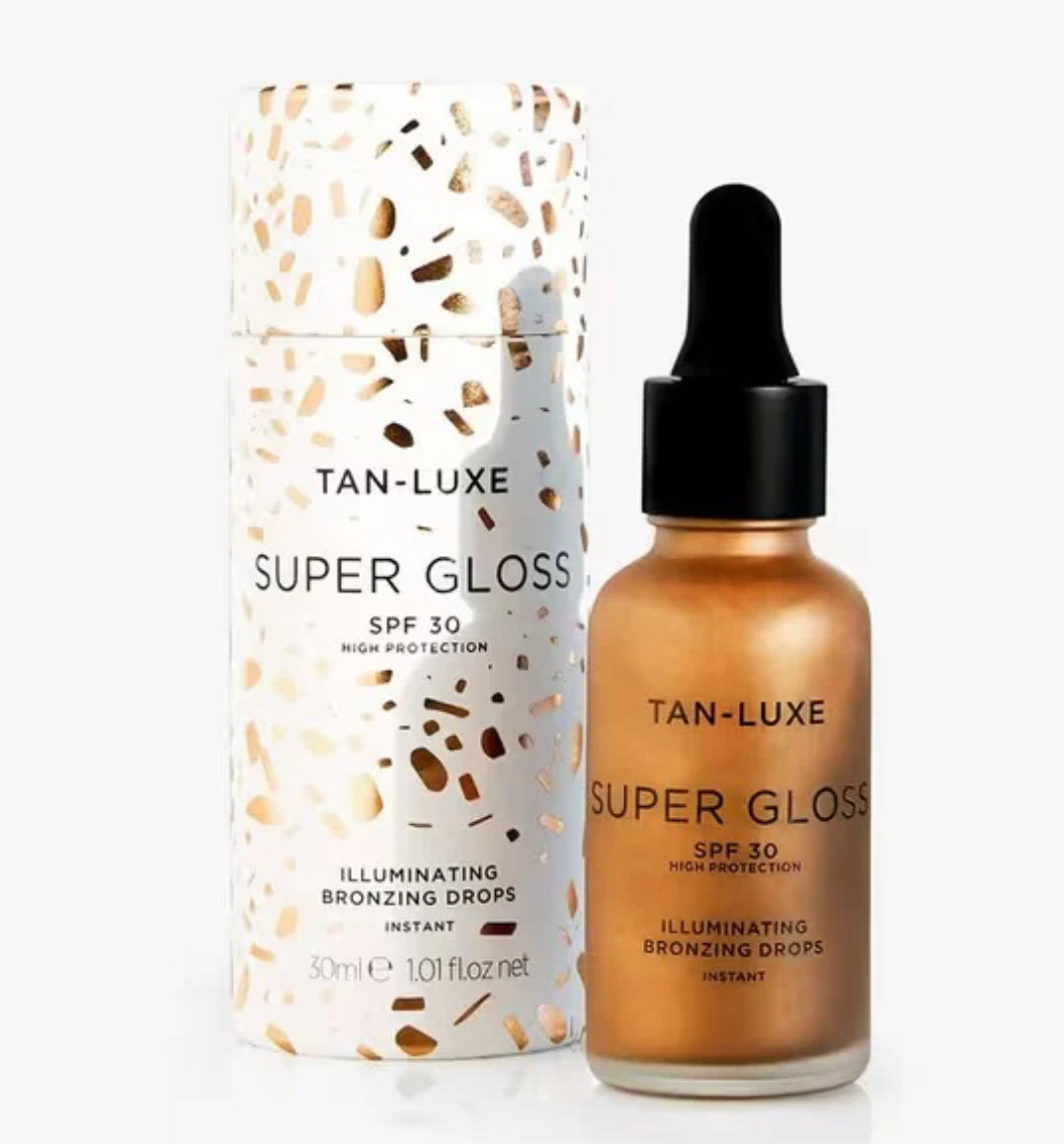 Meet the multi-tasking, daily use glow serum here to give you super sunny skin, instantly. Super Gloss, our first-ever DHA-free, skin-perfecting super serum, streamlines your daily routine combining skincare, makeup and SPF 30 into one supercharged bottle for an instant glossy glow.