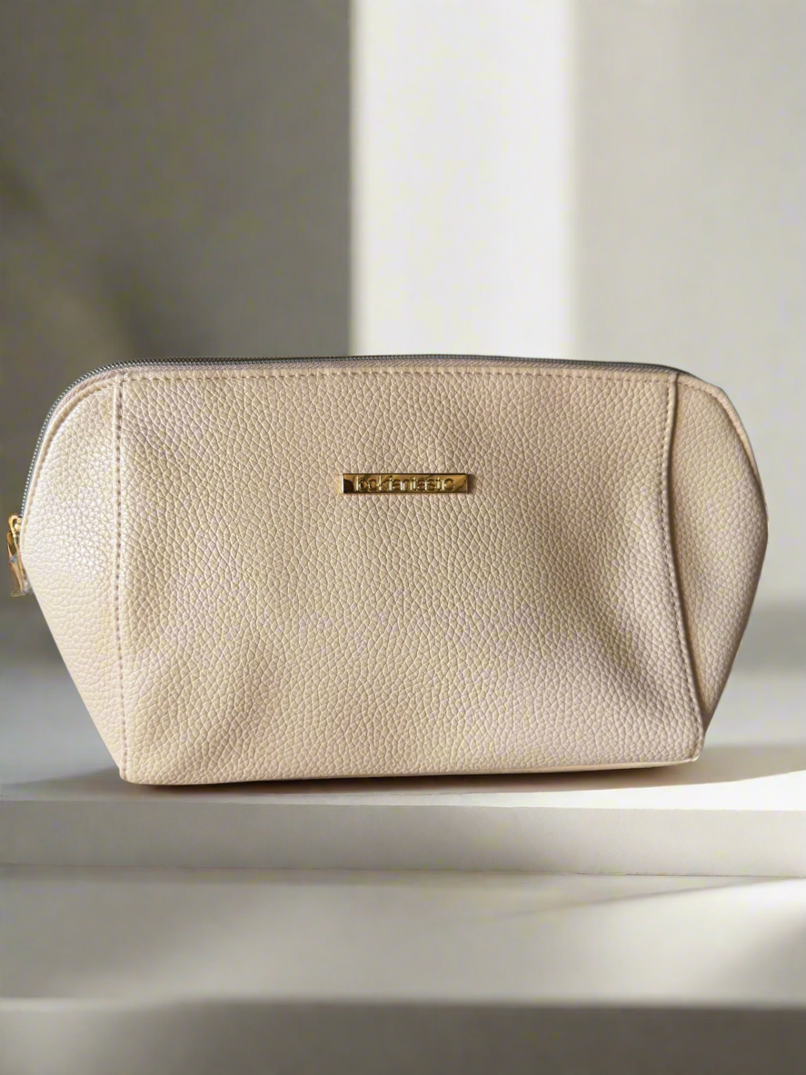 - Lookfantastic Makeup/Skincare Bag (light pink textured pouch with gold zip and “lookfantastic” logo)